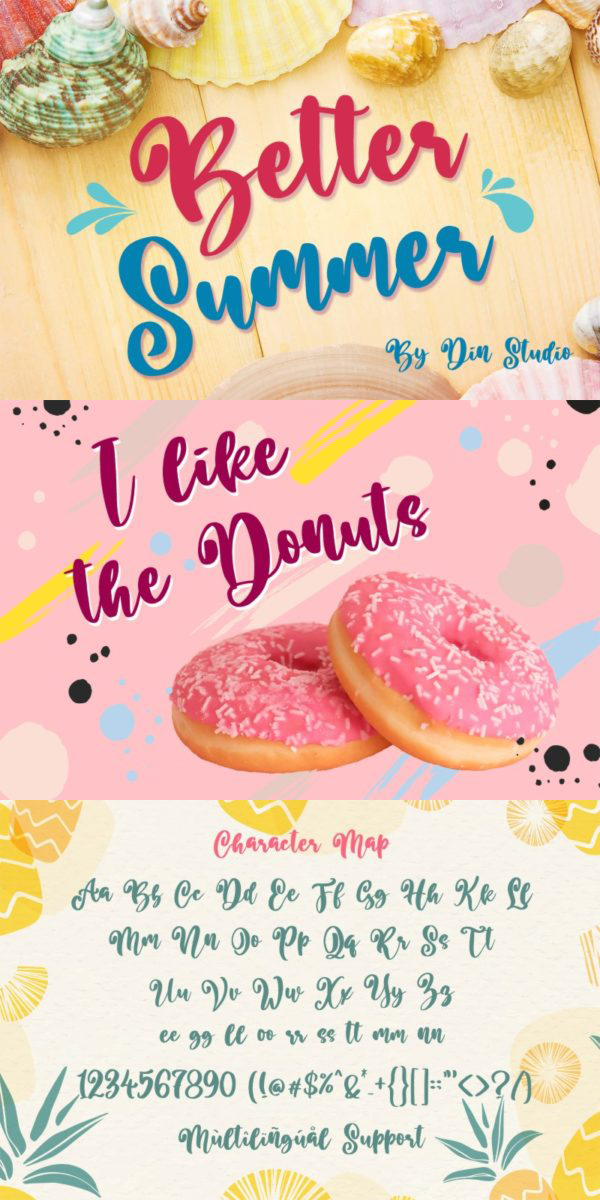 Introducing a Better Summer Script Font. Made from a chic brush, it will make your design more beautiful. This script font is perfect for anything adventurous and direct. Every stroke and curve was created to entice happiness and elegance. A real head-turner for your presentation, designs, branding, quotes, invitation, website illustrations, and much more.