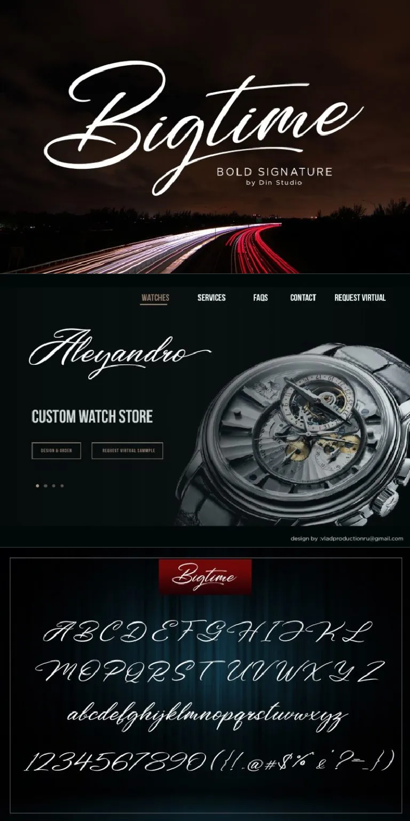Bigtime Script is the best choice. It is presented with natural, modern and luxury styles. Bold identity will give your work more value, so you will surely need this font for your branding.