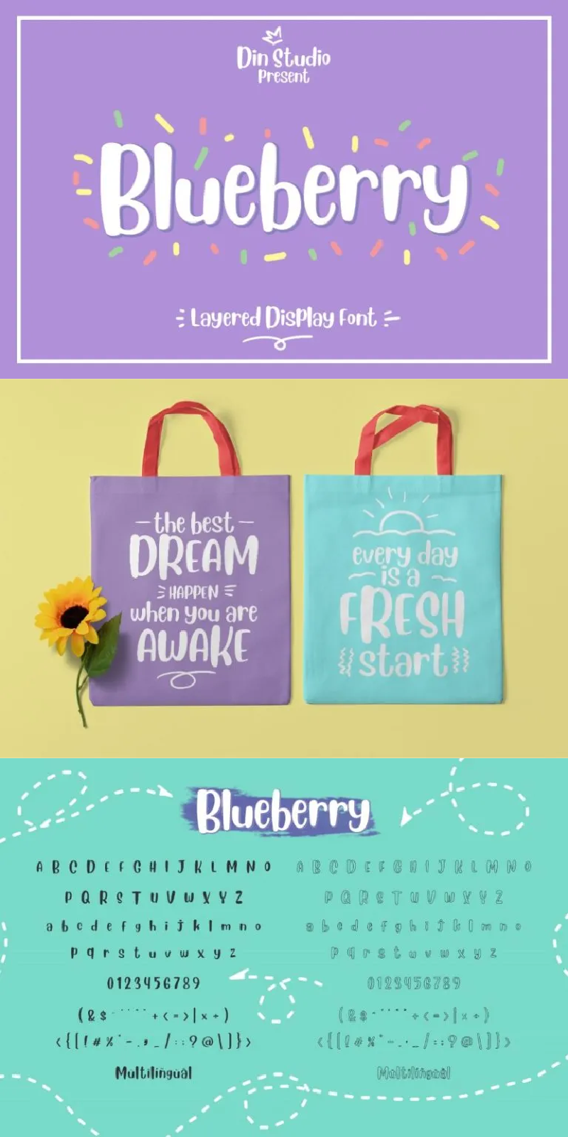 Link to Purchase for Commercial Use: https://din-studio.com/product/blueberry-layered-font/