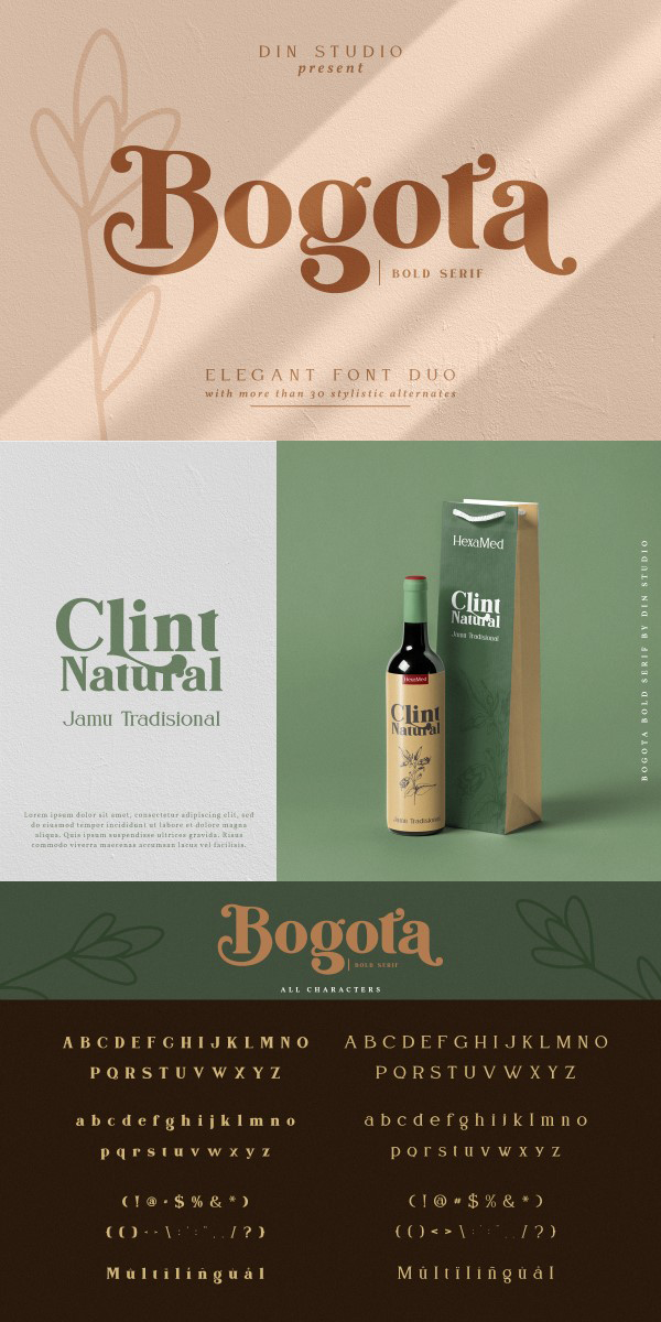 Hello, Everyone! Let’s welcome the Bogota font, a modern and clean display (Serif) font created by our talented font designers. The typeface design makes your designs more beautiful and inspiring. This font is suitable for any projects, like brandings, printed templates, logos, etc. The font is also available in a thin version (pairing font).