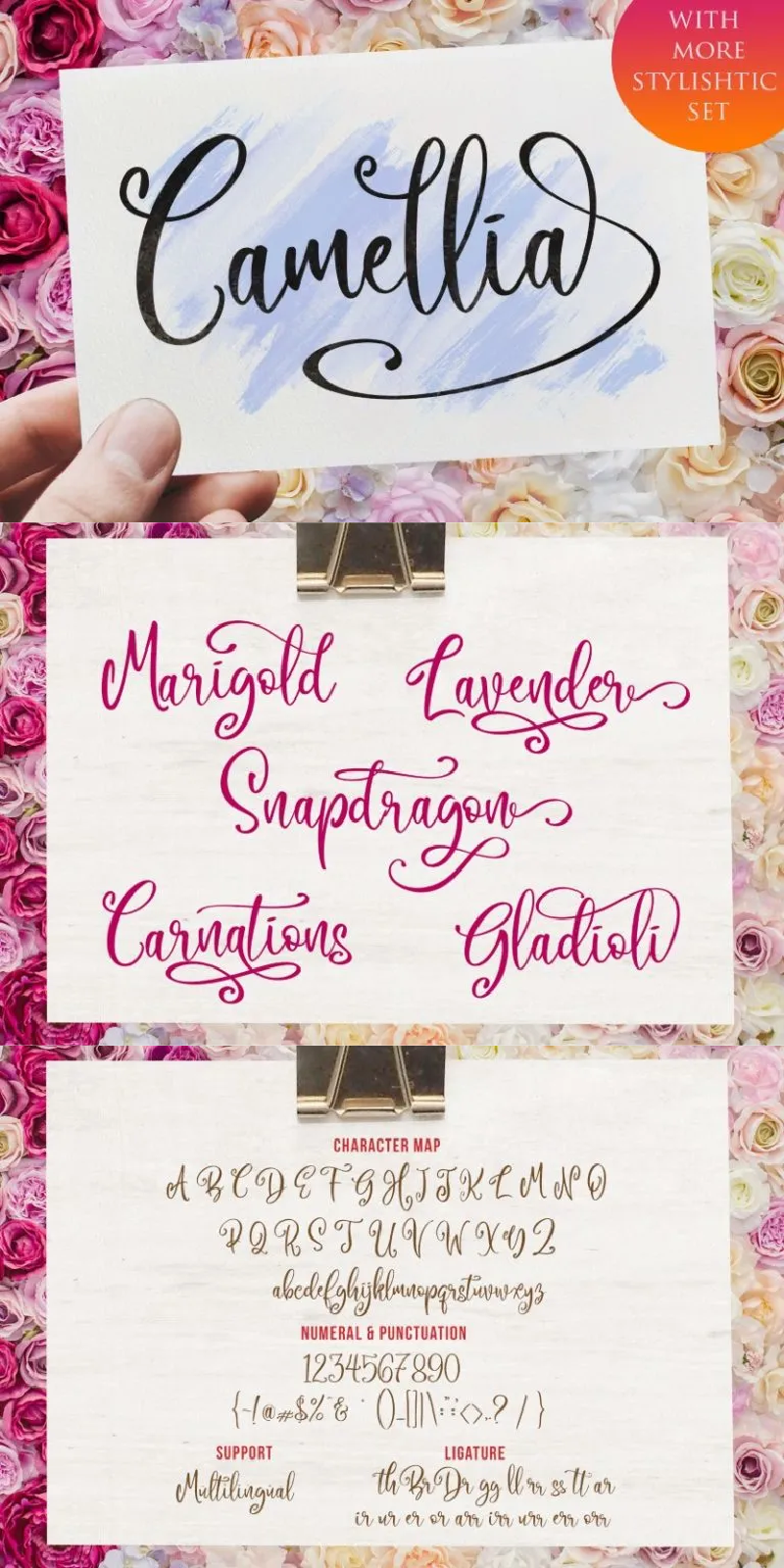 Camellia Script! This font suitable for your design project, especially for branding, wedding, social media campaign, advertising, and lettering. With the combination of elegant and casual style.