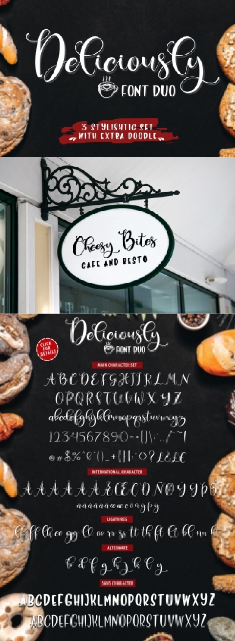 Deliciously Font Duo Set is a modern font script. This font is ideal for logos, branding projects, product packaging, quotes, greeting cards, and other lovely projects.