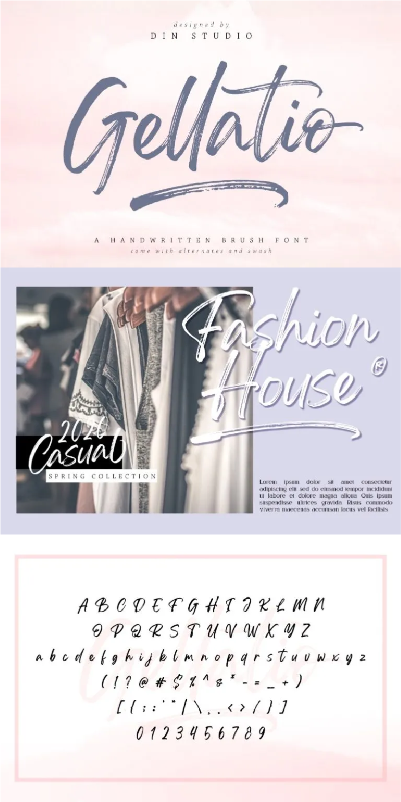 Link to Purchase for Commercial Use: https://din-studio.com/product/gellatio-brush-font/