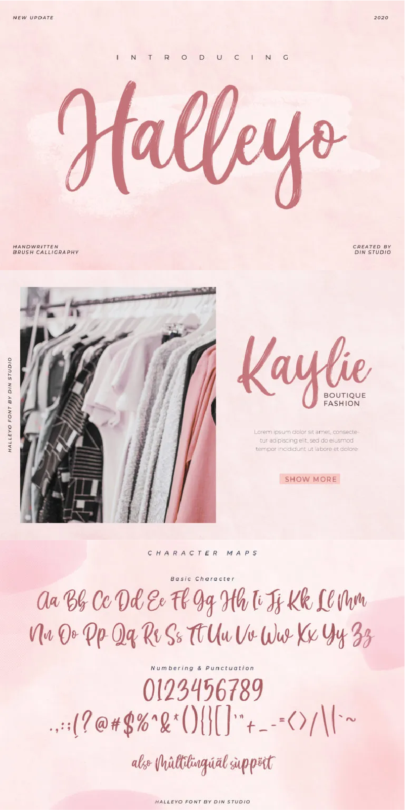 Halleyo, a brush handwritten font with a classy and natural handwritten style that brings a beautiful, classy typeface. Halleyo is best used for brandings, logotypes, and quotes.