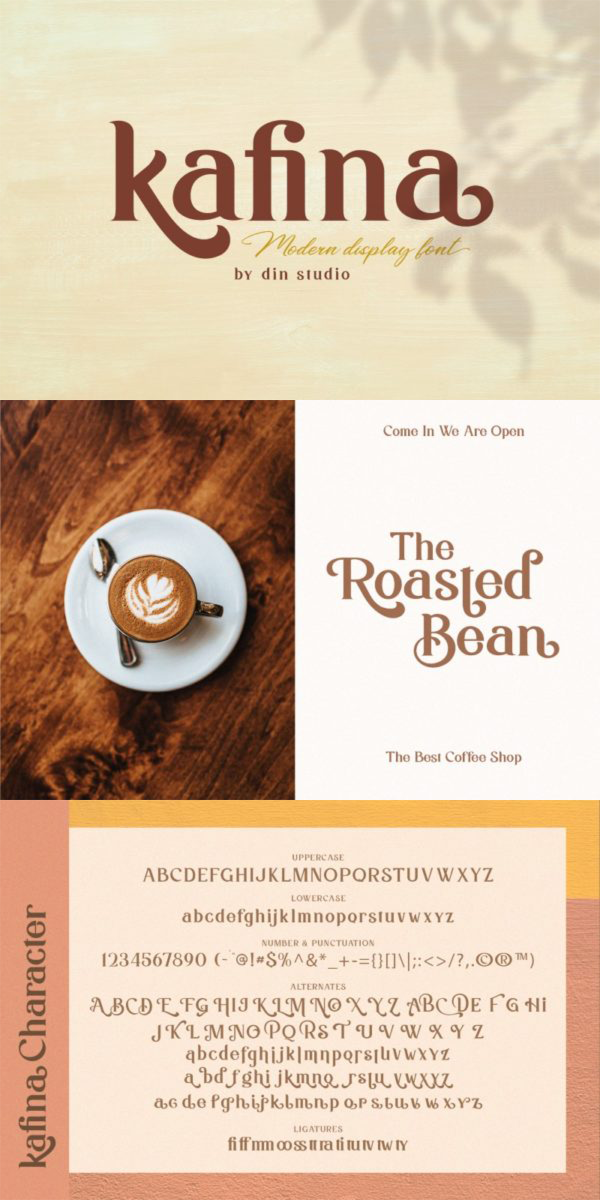 Kafina is a beautiful display font, designed with a modern and bold style. It’s suitable for brandings, logos, social media campaigns, ads, and many other designs. See the previews above to get some inspiration on how you can use them. Happy designing!