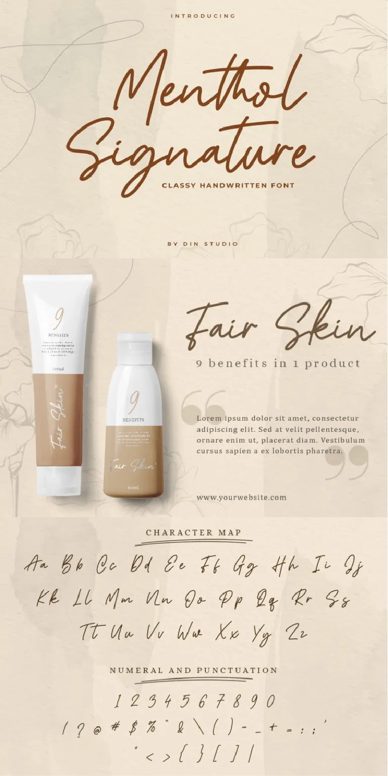 Menthol Signature is a classy monoline font made for any professional project brandings. Every letter has a unique and beautiful touch. The font includes a full set of hand lettered uppercase and lowercase letters, numerals, punctuations, and ligatures. Menthol Signature gives realistic hand lettered style.