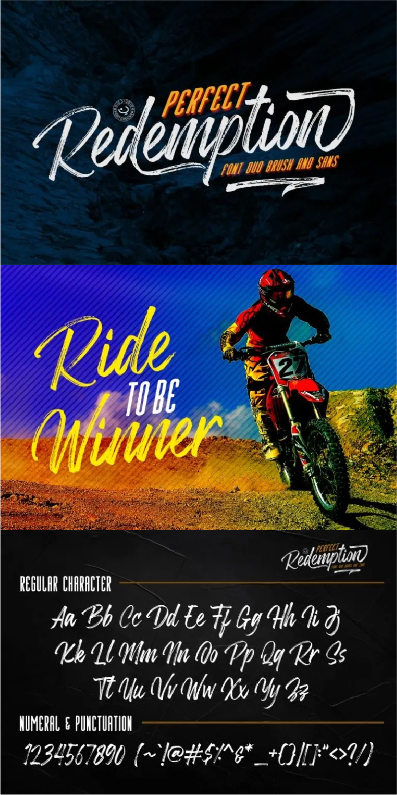 Perfect Redemption — Font Duo. It is a combination of brush and sans fonts. It is made with a natural brush. The texture of the brush font will make your designs more beautiful and powerful. This font is suitable for any design, like branding, quotes, t-shirt printing, etc.
