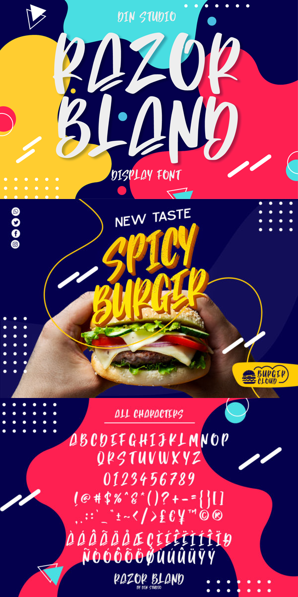 Display Font – Razor Bland. Razor Bland is a classy display font. Made for any professional project branding. It is the best for logos, branding and quotes. Every letter has a unique and beautiful touch. See the previews above to get some inspiration on how you can use them. Enjoy the font!