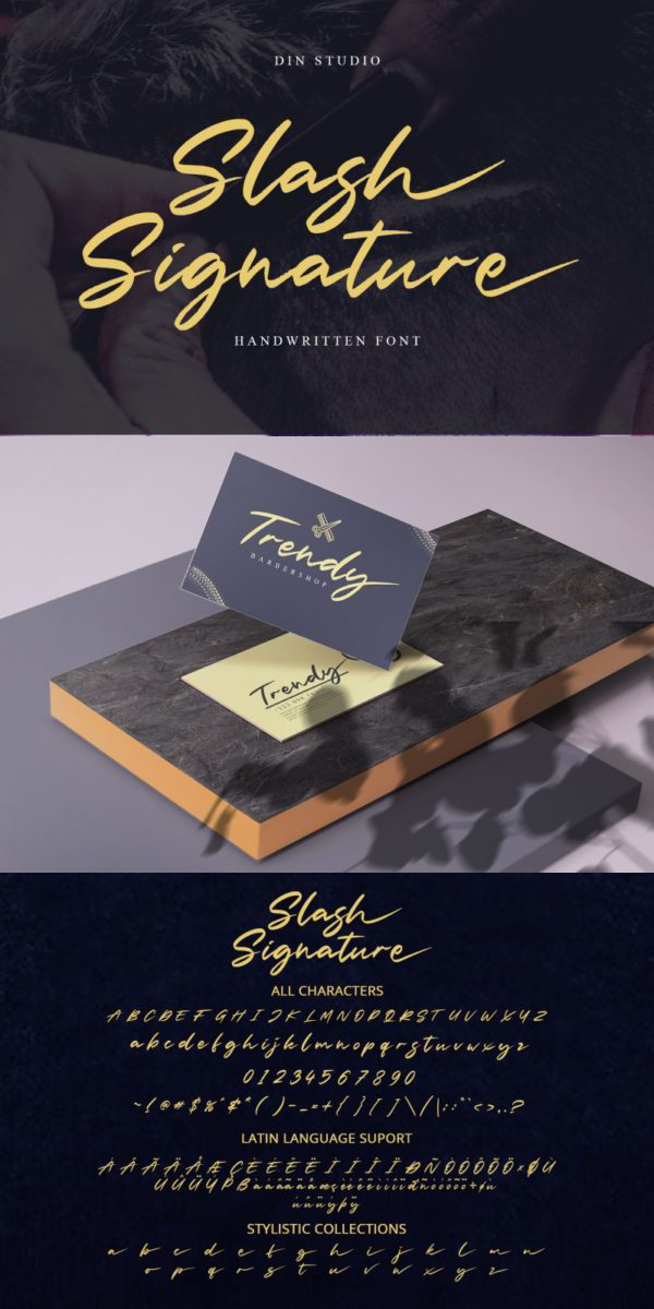 Slash Signature is a modern handwritten font. With a classy and natural handwritten style, it brings a classy and beautiful typeface. Slash signature is best used for branding, logotype, invitation, advertisement, and quotes. The font includes full set of hand lettered uppercase and lowercase letters, numerals, and punctuation. See the previews above to get some inspiration on how you can use them. Happy Designing!