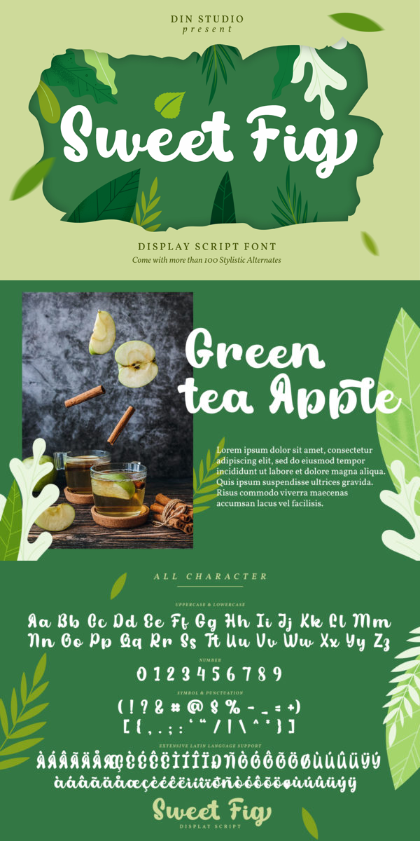 Sweet Fig is a display script font. This font is suitable for any design like branding especially for food packaging, quotes, printing, etc. The design can elevate your design project. Sweet fig includes full set of hand lettered uppercase and lowercase letters, numerals, punctuation, and ligatures. See the previews above to get some inspiration on how you can use them. Enjoy the font!