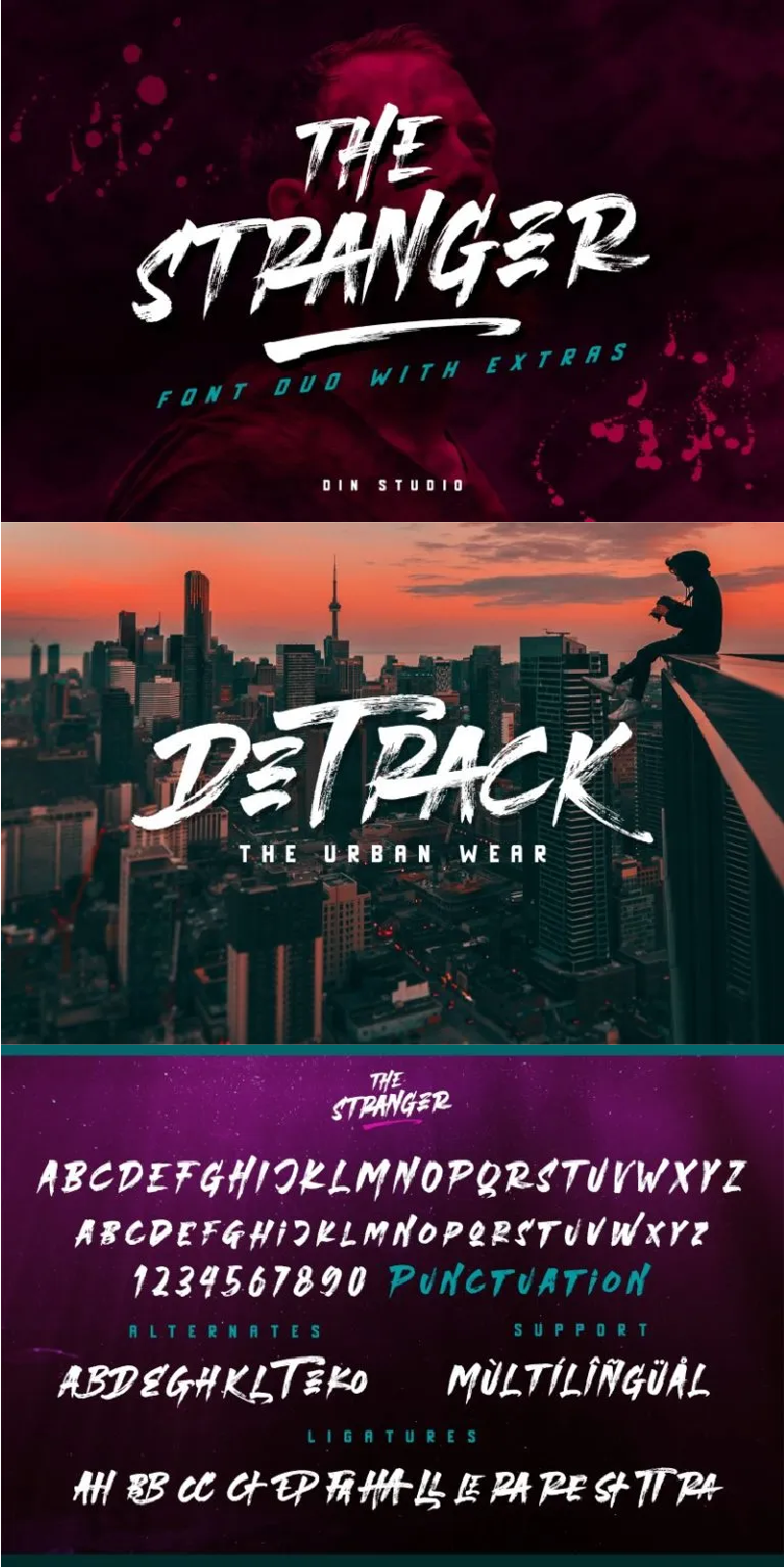 The Stranger is a combination of brush font and sans font made with natural brush. The texture from the brush font will make your design more beautiful and powerful. This font is suitable for any designs, like brandings, quotes, t-shirt printings, etc.
