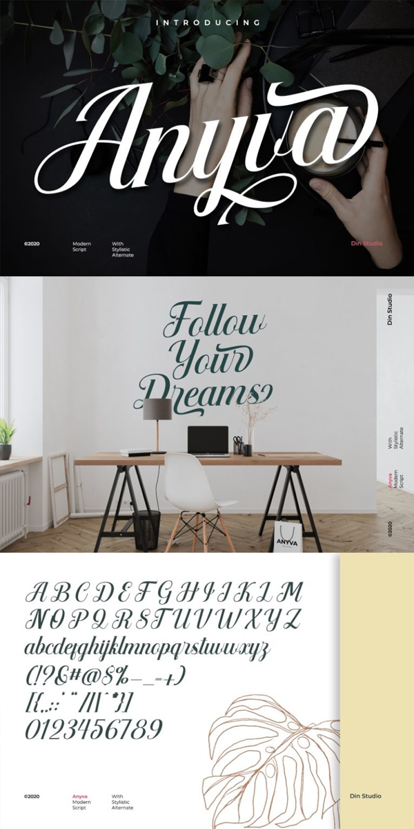 Hello, Everyone! Let’s welcome the Anyva, a modern calligraphy font showing a beautifully attractive typeface made for any professional project brandings. It is best applied for logos, brandings, weddings, and quotes. See the previews above to get some inspiration on how you can use them. Happy Designing!