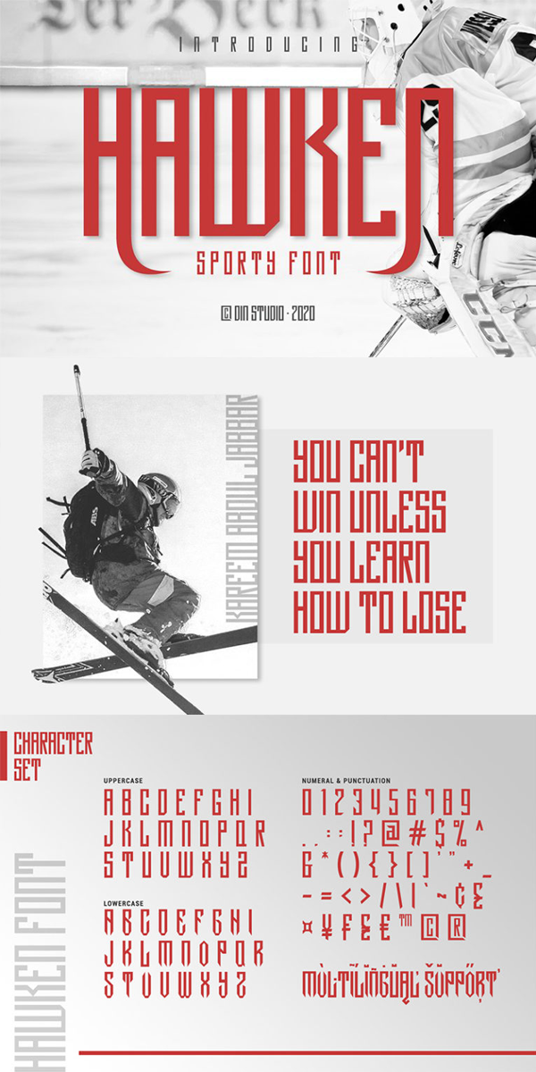 Hawken is a powerful sans serif display typeface come with sporty themes. Perfect for quotes, posters, logo, logotype, branding, business card, crafting needs, print, t-shirt, mug, merchandise, packaging, and many more. See the previews above to get some inspiration on how you can use them.