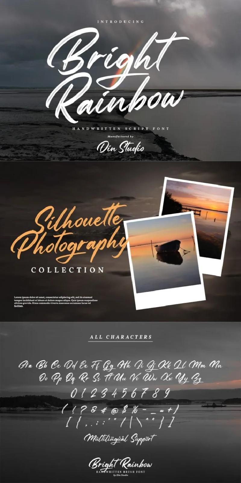 Bright Rainbow – Classy Brush Font. The brush combined with handwritten font will make your design project more beautiful. Made for any professional project branding. It is the best for logos, branding and quotes. Every letter has a unique and beautiful touch.