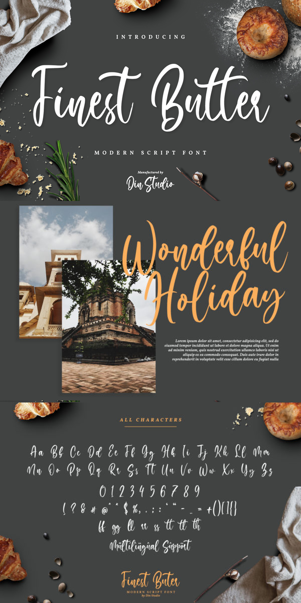 Finest Butter is a modern script font. Made for any professional project branding. It is the best for logos, branding and of quotes. Every letter has a unique and beautiful touch. See the previews above to get some inspiration on how you can use them. Enjoy the font!