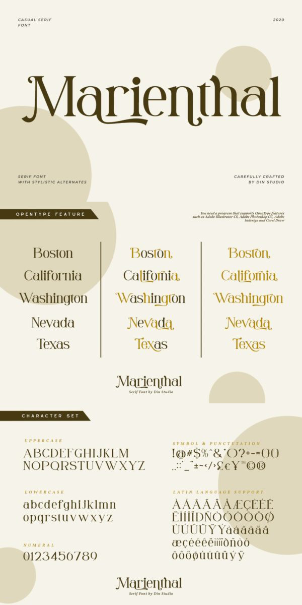 Marienthal – Casual Serif Font. Made for any professional project branding. It is the best for branding, printing, wedding and quotes. Every letter has a unique and beautiful touch. See the previews above to get some inspiration on how you can use them. Happy Designing!
