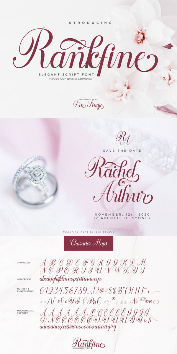 Rankfine is an elegant calligraphy font with natural and handwritten style. It brings a modern and attractive typeface. Made for any professional project branding. It is the best for logos, branding, wedding and quotes. See the previews above to get some inspiration on how you can use them. Happy Designing!