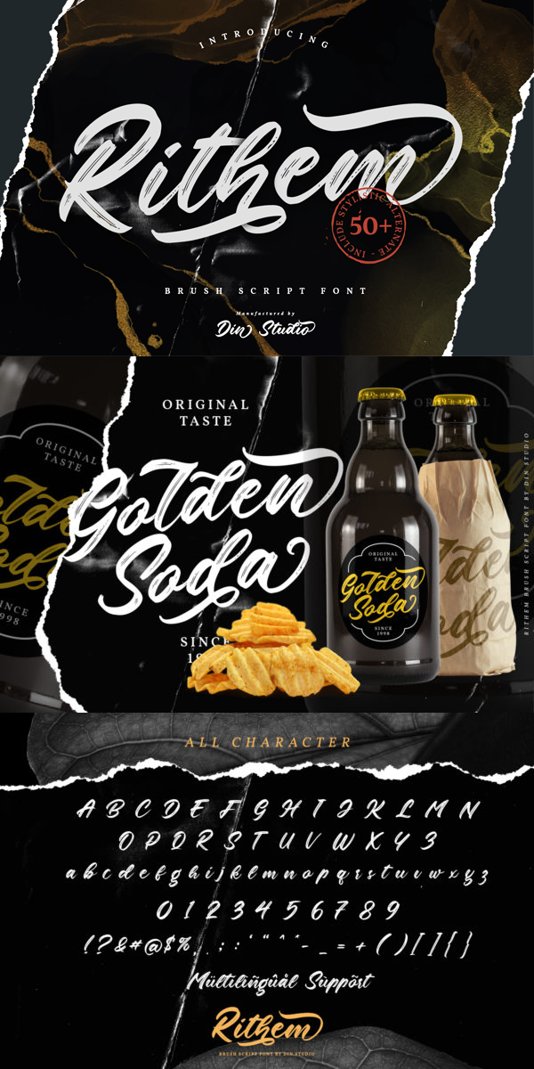 Rithem – A Classy Brush Font. The brush combined with calligraphy font will make your design project more powerful. Made for any professional project branding. It is the best for logos, branding and quotes. Every letter has a unique and beautiful touch. See the previews above to get some inspiration on how you can use them. Enjoy the font!