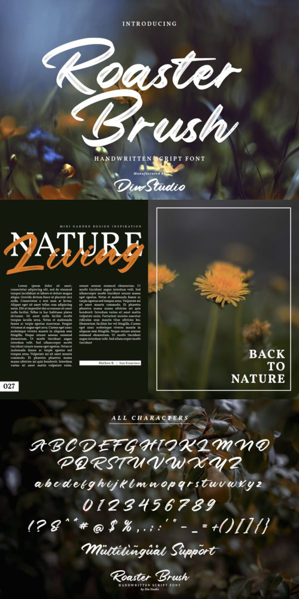 Roaster Brush – an Elegant Handwritten font. The combination of handwritten and brush fonts make your design projects more attractive since it is made for any professional project brandings, for instance logos, brandings and quotes. Every letter has a unique and beautiful touch. See the previews above to get some inspiration on how you can use them. Happy designing!