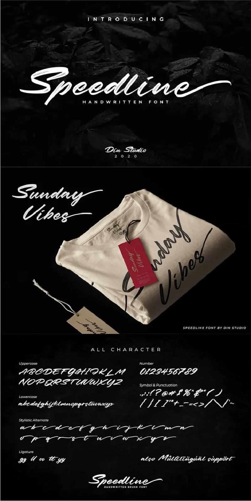 Speedline – A Classy Brush Font. The brush combined with handwritten font will make your design project more beautiful. Made for any professional project branding. It is the best for logos, branding and quotes. Every letter has a unique and beautiful touch.