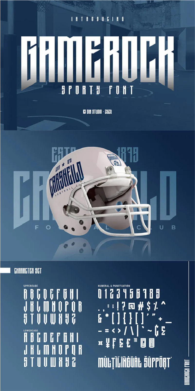 Gamerock is a classic sport font made for any professional project related to sports. It was designed primarily as a captivating font to add the right amount of modernity and style. The font can be used for printing, branding, and quotes.
