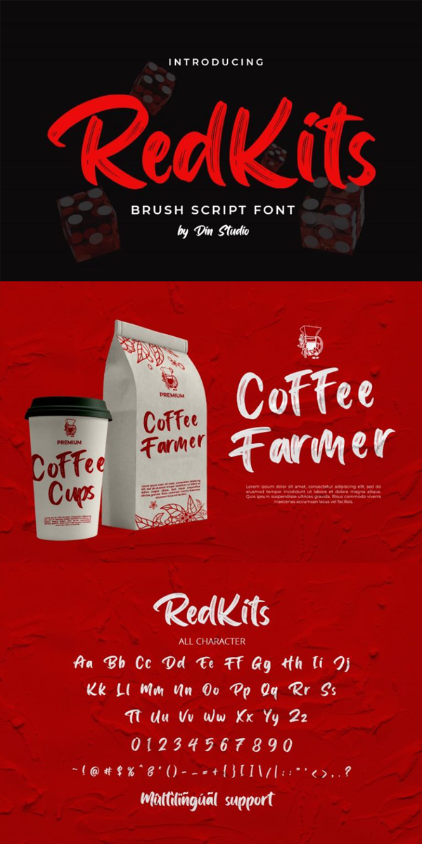 RedKits is a beautiful brush font. The combination of handwritten and brush font will make your design project more attractive for any professional project branding. It is best used for logos, brandings and quotes. See the previews above to get some inspiration on how you can use them. Happy designing!