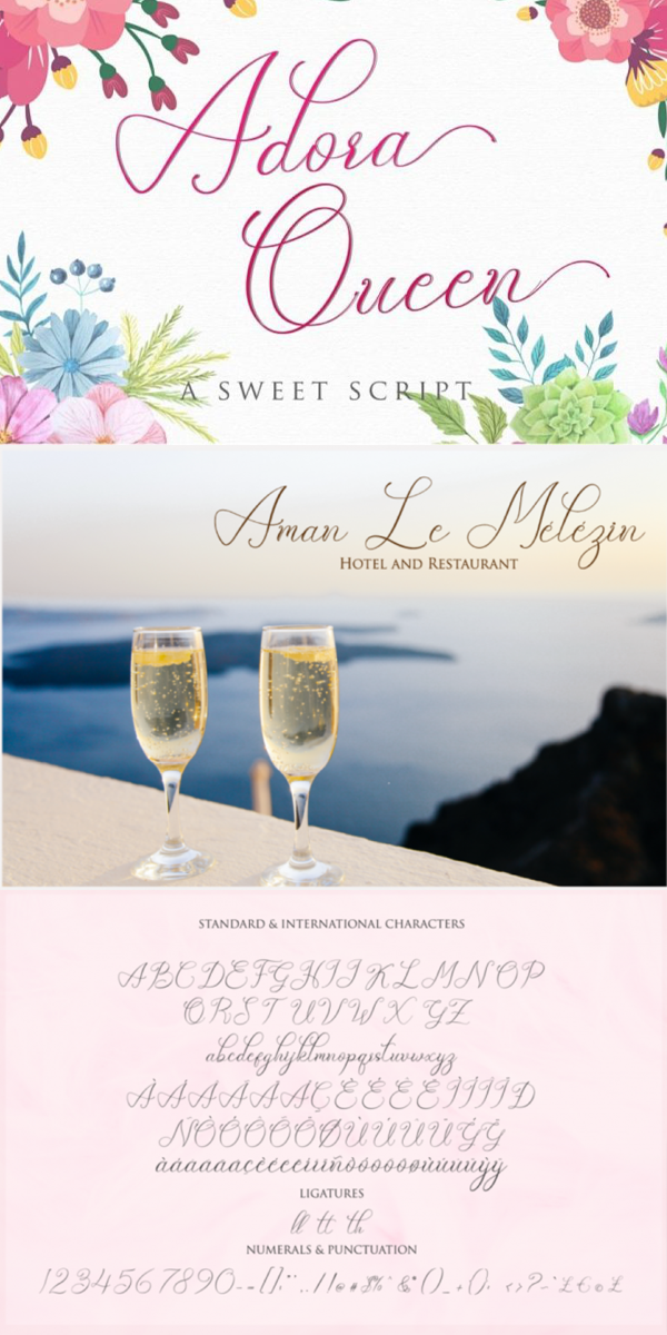 - Adora Queen Ligatures (included in Adora Queen Regular and it is showed in font preview)