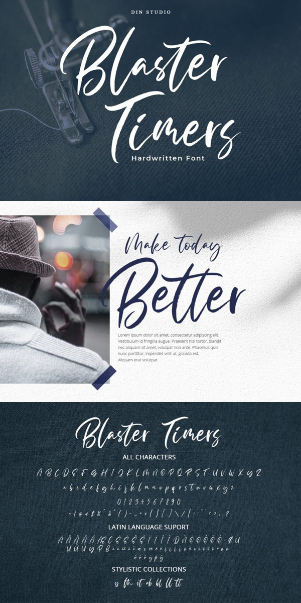 Blaster Timers is a classy brush font. Made for any professional project branding such as social media campaign, ads, invitation, merchandise, and more. Every letter has a unique and beautiful touch. The font includes full set of hand lettered uppercase and lowercase letters, numerals, punctuation, and ligatures.
