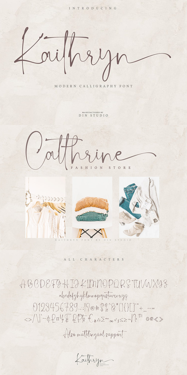 Kaithryn giving you a beautifully attractive typeface. The font has an authentic modern calligraphic look making it perfect for branding and digital designs. See the previews above to get some inspiration on how you can use them. Happy designing!