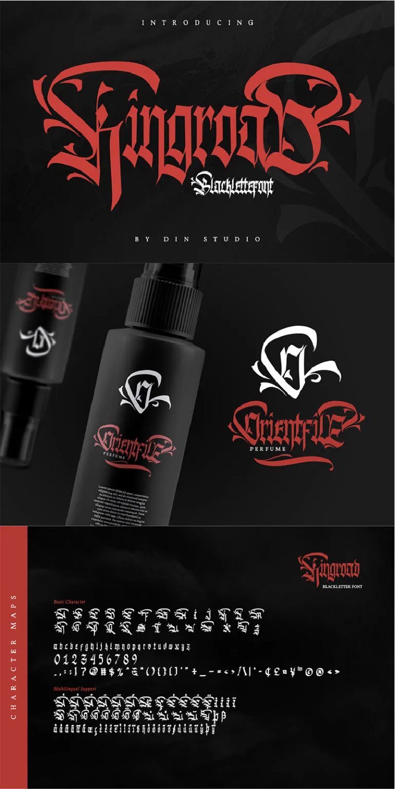 Kingroad is authentic and modern blackletter font. The font is suitable for any branding project like logo, t-shirt printing and many more. Outstanding in a wide range of contexts.