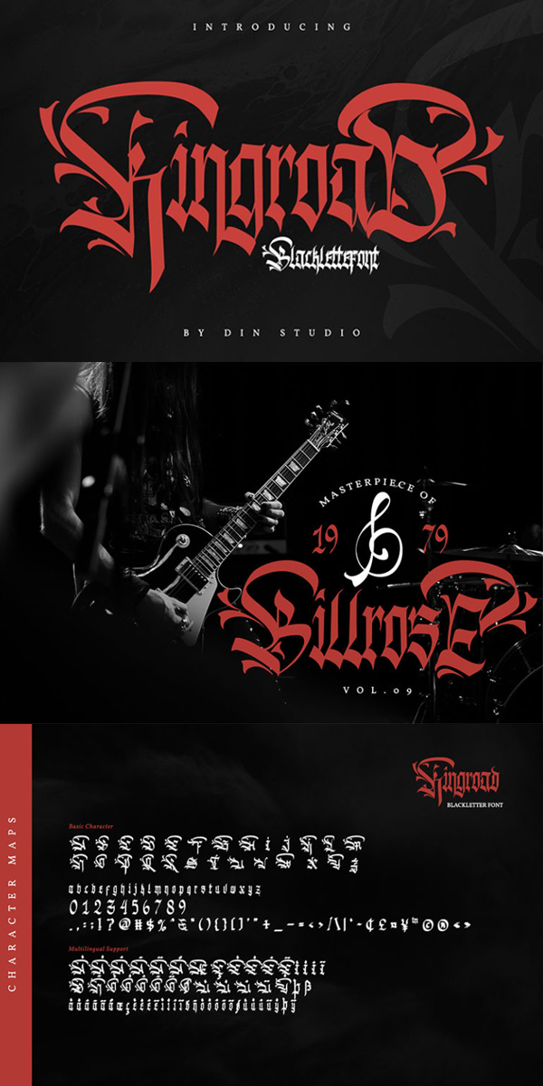 Kingroad is authentic and modern blackletter font. The font is suitable for any branding project like logo, t-shirt printing and many more. Outstanding in a wide range of contexts. See the previews above to get some inspiration on how you can use them. Happy Designing!