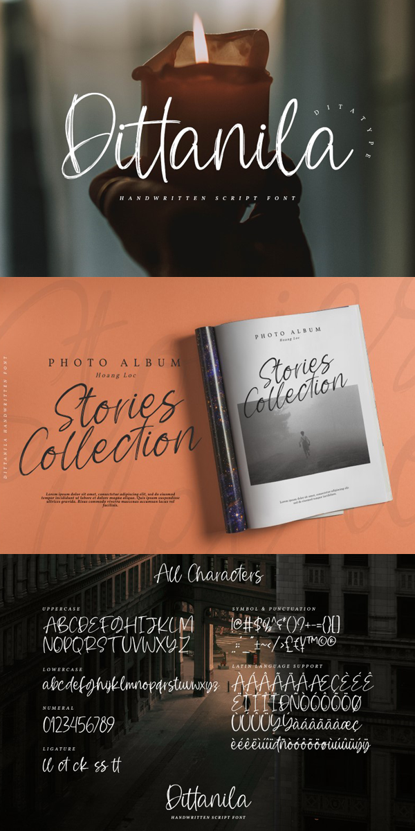 Dittanila is a beautiful handwritten font. The handwritten combined with brush font will make your design project modern and attractive. Made for any professional project branding. Dittanila is best used for branding logotype, and quotes.