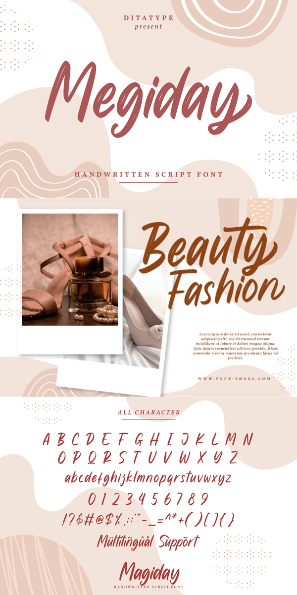 Megiday is a elegant handwritten font. Made for any professional project branding. It is the best for logos, branding and quotes. Every letter has a unique and beautiful touch.
