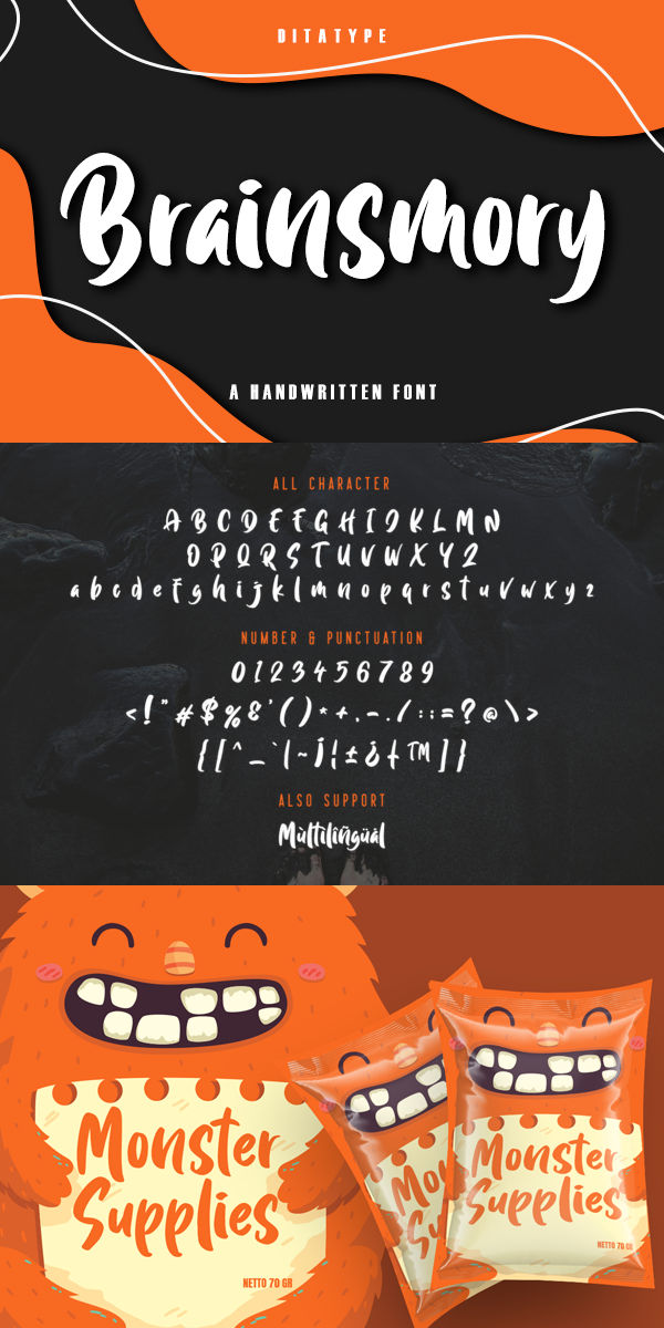 Brainsmory is a casual, fun handwritten font, created by using a brush pen. Clean and a little bit quirky, this font is the perfect fit for all of your logos, branding, social media, and crafty DIY projects.