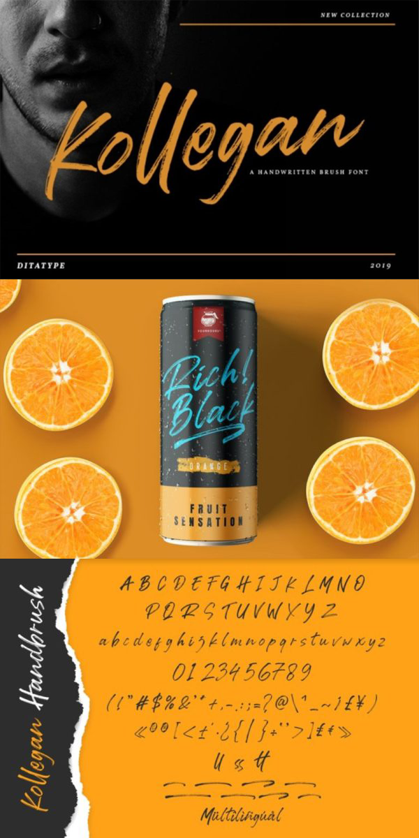 Kollegan is a casual, fun handwritten font, created by using a brush pen. Clean and a little bit quirky, this font is the perfect fit for all of your logos, branding, social media, and crafty DIY projects.