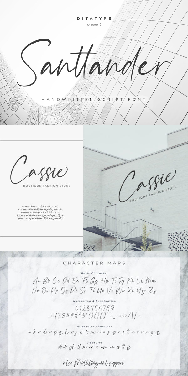 Santtander is a modern handwritten font. With a classy and natural handwritten style, it brings a classy and chic typeface. Santtander is best used for weddings, branding, logotype, and quotes.