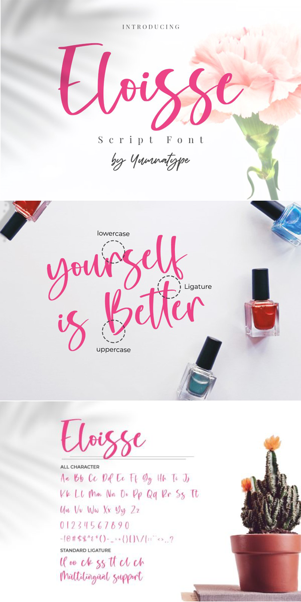Eloisse is a elegant handwritten font. Made for any professional project branding. It is the best for logos, branding and quotes. Every letter has a unique and beautiful touch.