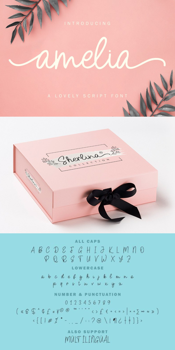 Introducing Amelia Script- handwritten font. Amelia is a beautiful monoline font . This font is suitable for any design like branding, quotes, t-shirt printing and etc.