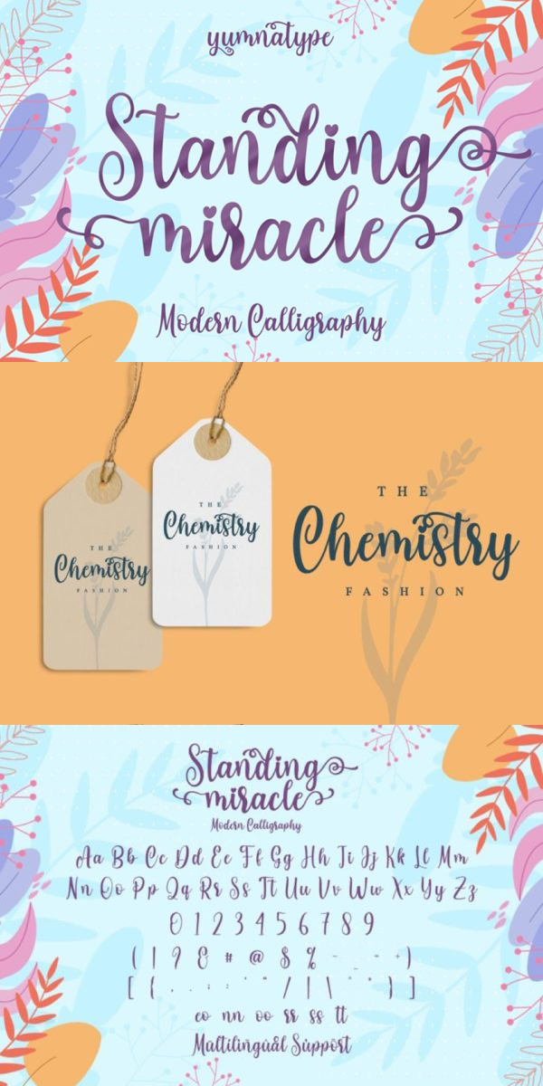 Standing Miracle is a beautiful script font with a natural and unique design will make your project more beautiful and powerful. The font is suitable for your branding project and any design.
