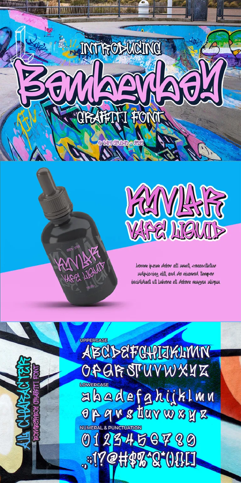 Bomberboy – A Grafiti Font. The font is offered in two versions: solid and shadow. Use this cool, colourful graffiti font to breathe a street life vibe into your projects. It is perfect for logos, printed quotes, cards, packaging, website or social media branding, and many more!