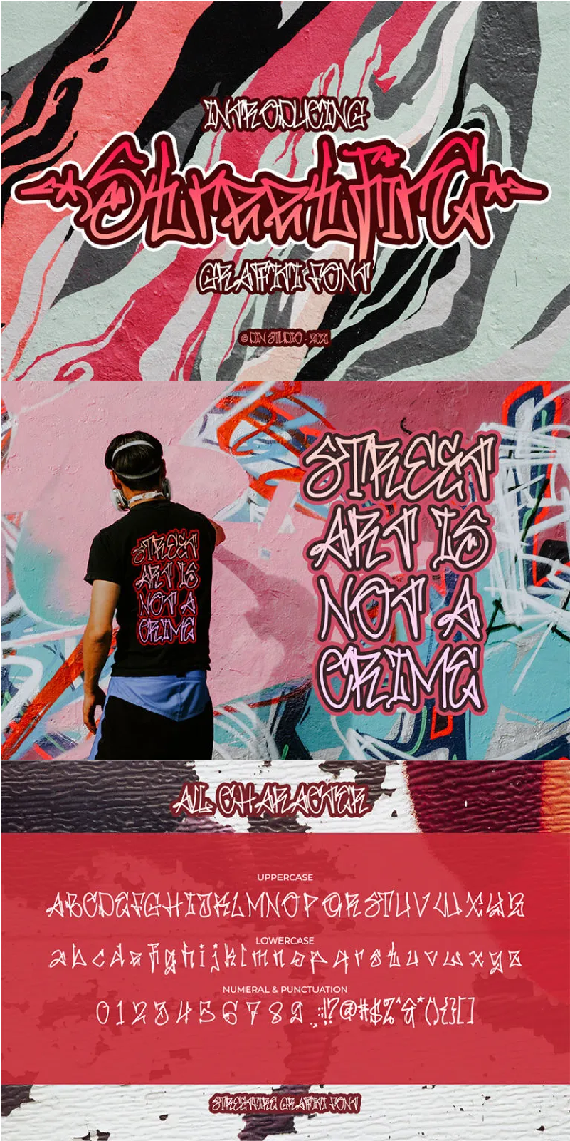 Streetfire – A Grafiti Font. This typeface with artistic style looks very interesting for loads of different projects and promotions. Perfect for social media branding projects, fashion designs, printed quotes, packaging, or even as a stylish text overlay to any background image.