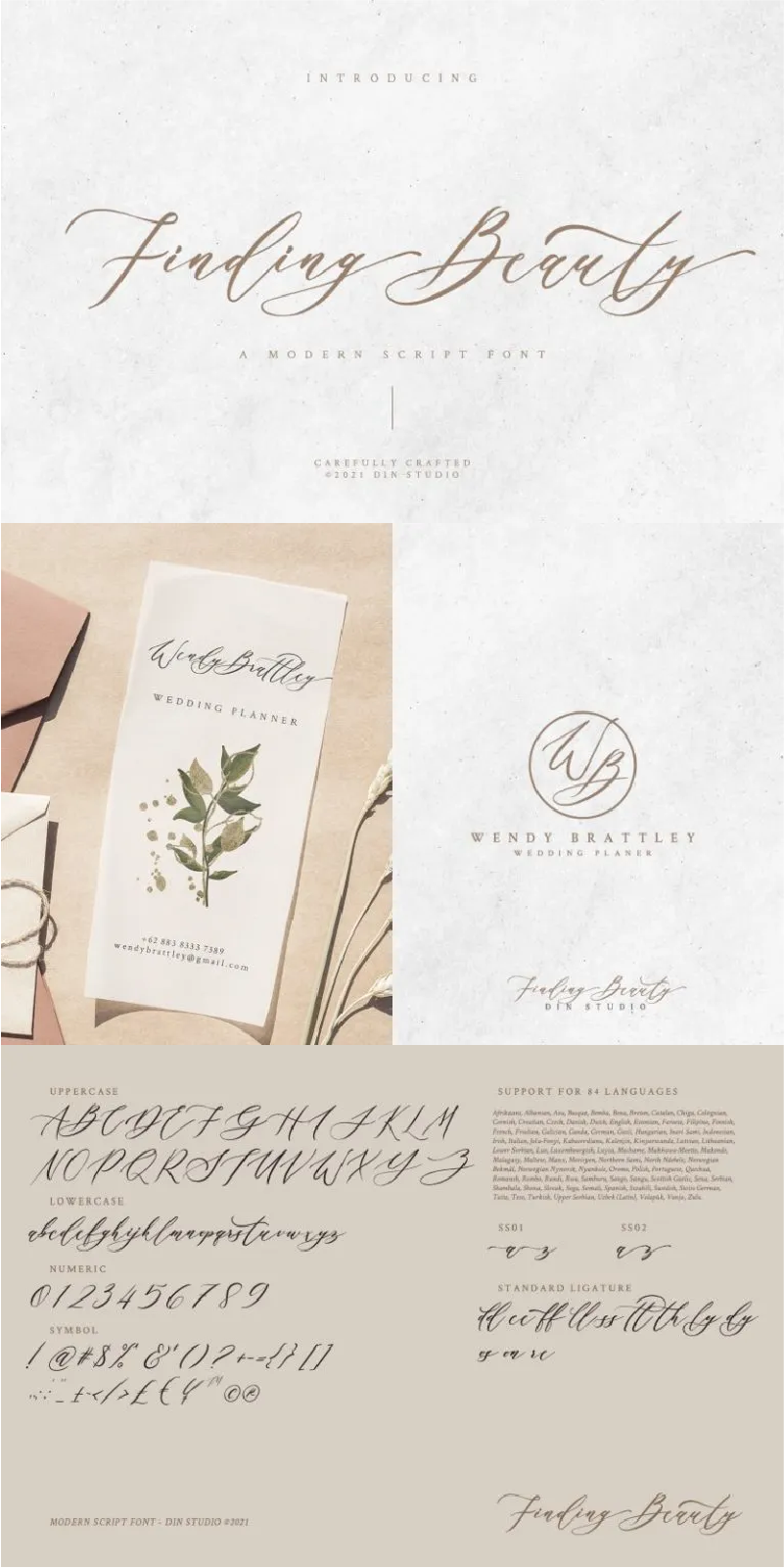 Finding Beauty is designed and carefully handcrafted elegantly and gracefully to embrace your project. This font will never go wrong for your audience, clients, guests or anyone around you! Use it for headings, logos, business cards, printed quotes, invitations of all sorts, cards, packaging, and your website or social media branding.