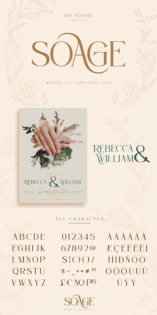 Soage is modern serif font. Made for any professional project branding. It is the best for branding, printing, wedding and quotes. Every letter has a unique and beautiful touch. See the previews above to get some inspiration on how you can use them. Enjoy the font!