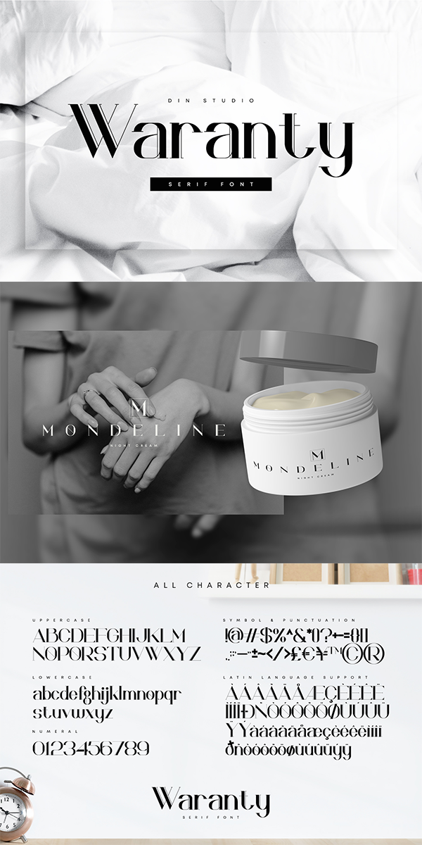 Waranty is an elegant serif font made for any professional project brandings which is best used for logos, brandings, and quotes. Every letter has a unique and beautiful touch. See the previews above to get some inspiration on how you can use them. Happy Designing!