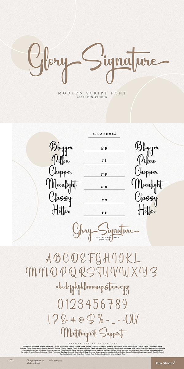 Glory Signature includes Multilingual Options to make your branding globally acceptable. See the previews above to get some inspiration on how you can use them.