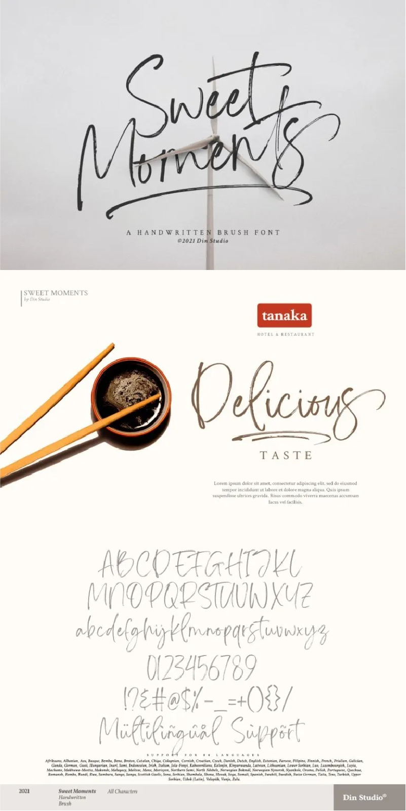 Sweet Moments – A Handwritten Brush Font. This font is more than just another brush font. It encapsulates the essence of luxury and elegance. With elegance and passion edged into every curve and twist of this brush font – you’ll be sure to boost your sales and make best impressions. This font become more special with many swashes version option. Use it for headings, logos, business cards, printed quotes, invitations of all sorts, cards, packaging, and your website or social media branding.