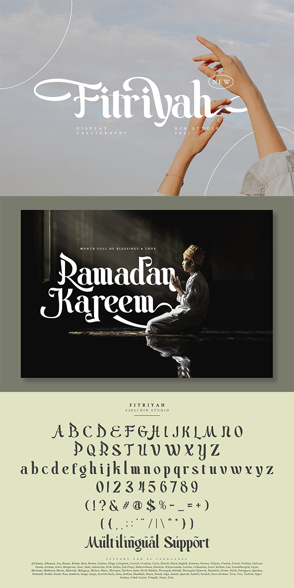 Fitriyah display font includes Multilingual Options to make your branding globally acceptable. See the previews above to get some inspiration on how you can use them.