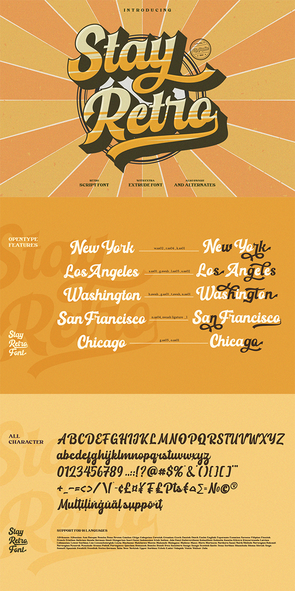 Stay Retro includes multilingual options to make your branding reach a global audience. See the previews above to get some inspiration on how you can use them.