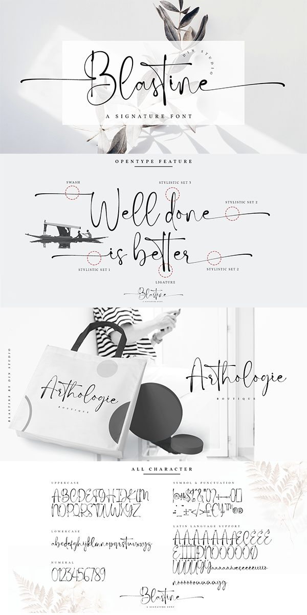 Blastine is a beautiful signature font showing a modern attractive typeface made for any professional project brandings. It is best applied for logos, brandings, cards, packaging, book covers, wedding invitations, printed quotes, merchandise, and so on. See the previews above to get some inspiration on how you can use them. Happy designing!