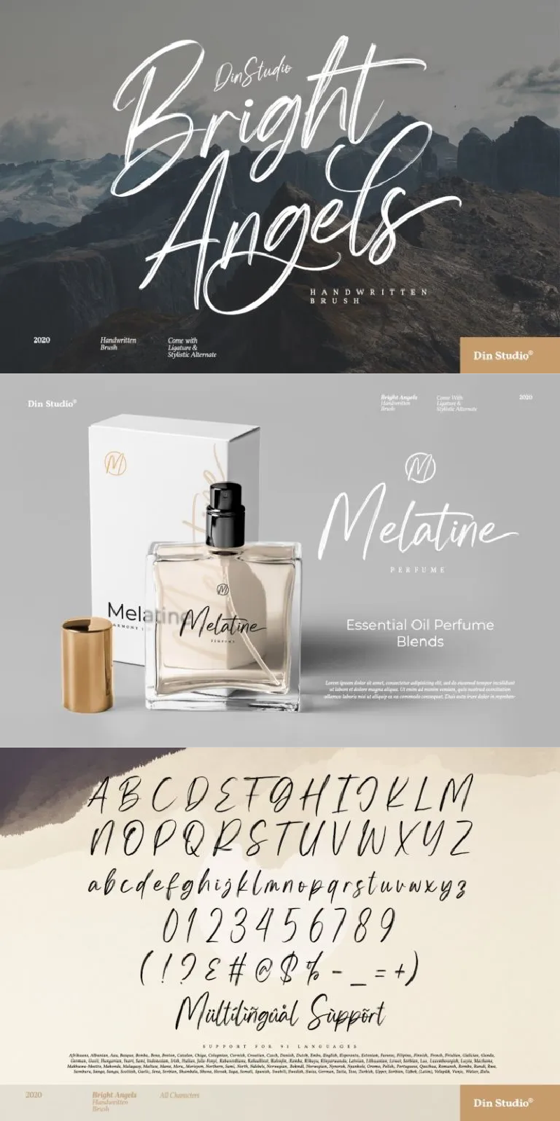 Bright Angels – A Handwritten Font. This handcrafted typeface combined with a brush style looks very elegant for loads of different projects and promotions. It is very suitable to use for your websites, social media brandings, Pinterest banners, printed invitations, and more.